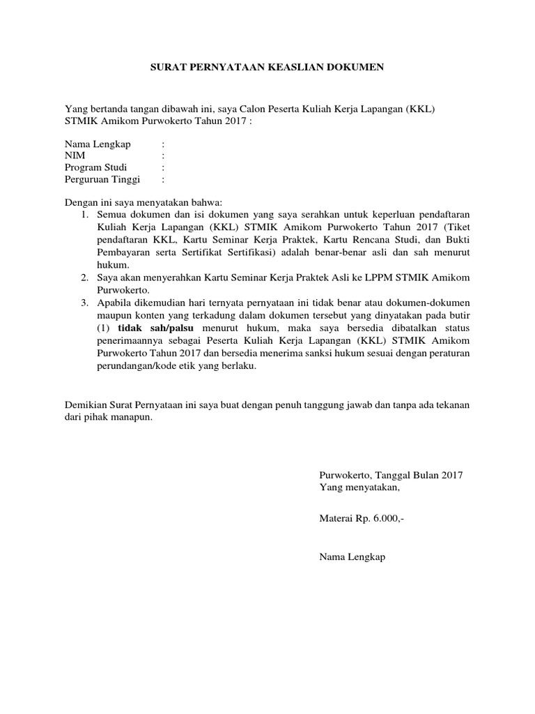 Surat pernyataan ini temasuk juga sebuah dokumen yang dilindungi oleh negara, dengan syarat bermaterai. Disini kami menyediakan contoh surat pernyataan kehilangan dokumen berbentuk file.doc dan tinggal di edit sesuai dengan kebutuhan anda sendiri. Semoga ulasan ini beserta file berkas/dokumen yang dilampirkan di atas. Contoh surat pernyataan mulai dari perjanjian, diri, sekolah, kesalahan, kesanggupan, kerja, hutang, dan bahasa inggris, semoga bisa membantu. Caranya adalah dengan membuat surat pernyataan kehilangan. Contoh surat pernyataan tersebut sudah dibuat dengan benar dan baik, sehingga bisa digunakan sebagai acuan atau contoh surat pernyataan.tentunya, masih banyak lagi contoh surat pernyataan yang bisa dijadikan referensi seperti surat pernyataan kesalahan,surat pernyataan bermaterai. Isi suratnya tersebut bisa dibilang tidak mirip dengan surat resmi lainnya, karena lebih banyak membahas mengenai alasan seseorang. Surat pernyataan dokumen validasi bermaterai rp 6000. Semua pernyataan dan data yang terlampir dan tercantum pada dokumen. Ada yang sudah mengenal atau pernah mendengar mengenai surat pernyataan? Desa katialada kecamatan kwandang kabupaten gorontalo utara nama sekolah. Namun ada kalanya pernyataan yang akan diberikan harus dengan menggunakan surat, baik itu menyatakan diri sendiri ataupun menyatakan tentang orang lain. Ginanda juniati hasan tempat tanggal lahir :